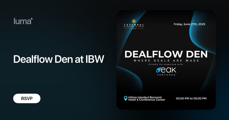ISTANBUL, TÜRKIYE - 15 avril 2025 - The Dealflow Den, l'événement phare d'investissement et de mise en relation de startups de l'Istanbul Blockchain Week (IBW), revient avec sa deuxième édition en présence à l'hôtel Hilton Istanbul Bomonti les 26 et 27 juin 2025.